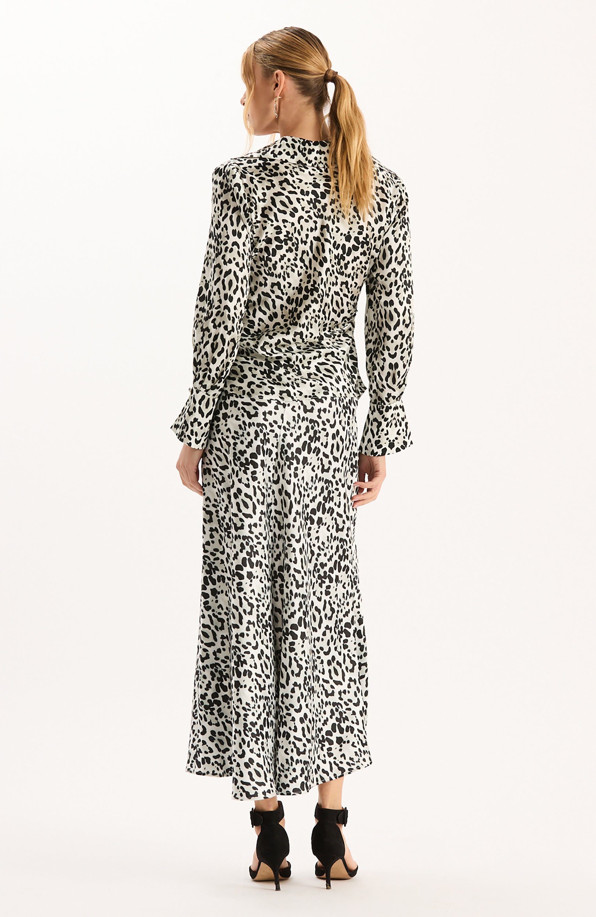 The Astrid Charmeuse Blouse features a distinctive cowl neckline, satin finish, and long sleeves with button cuffs. Easy to dress up and effortless to style, this piece elevates any look from meetings to elegant evening events.