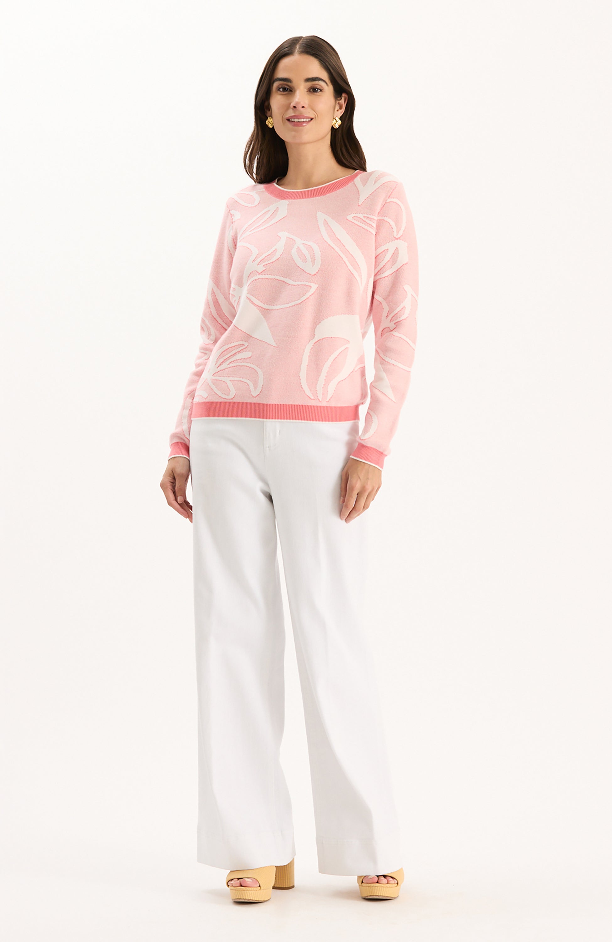 The Conner Textured Leaves Sweater features a classic crew neckline, soft knit fabric, and relaxed silhouette for a touch of everyday comfort and style. Easy to layer and effortless to wear, this piece is ideal for travel and transitions seamlessly from morning meetings to casual afternoon plans.
